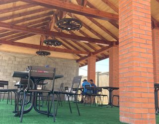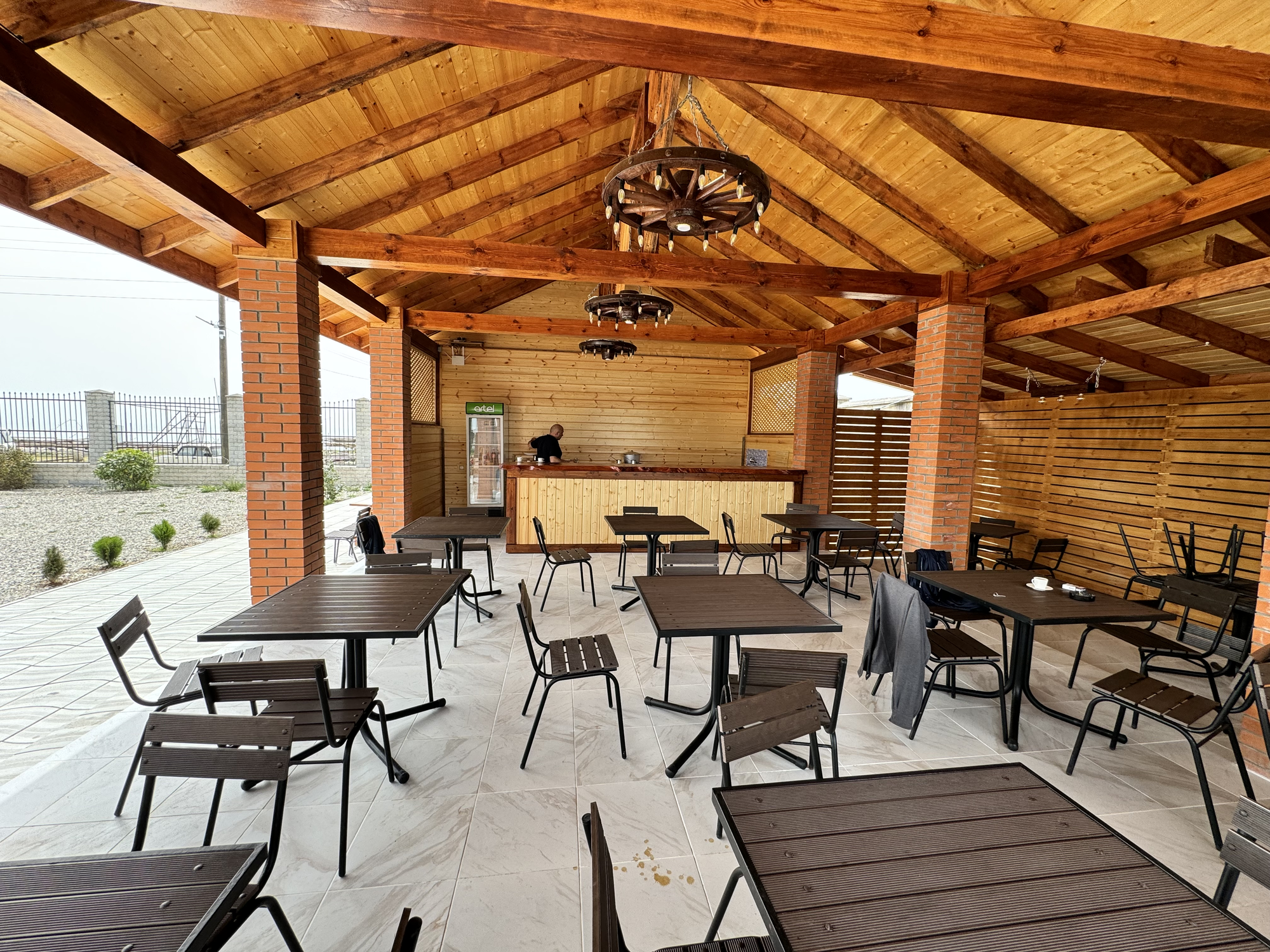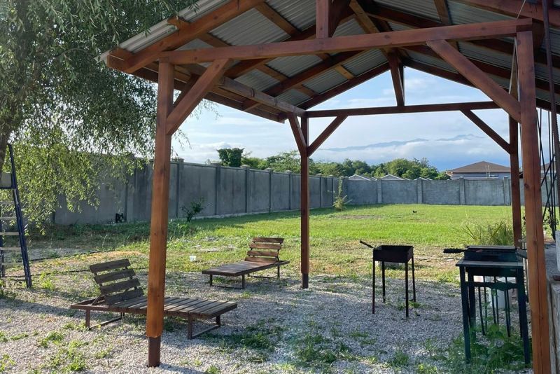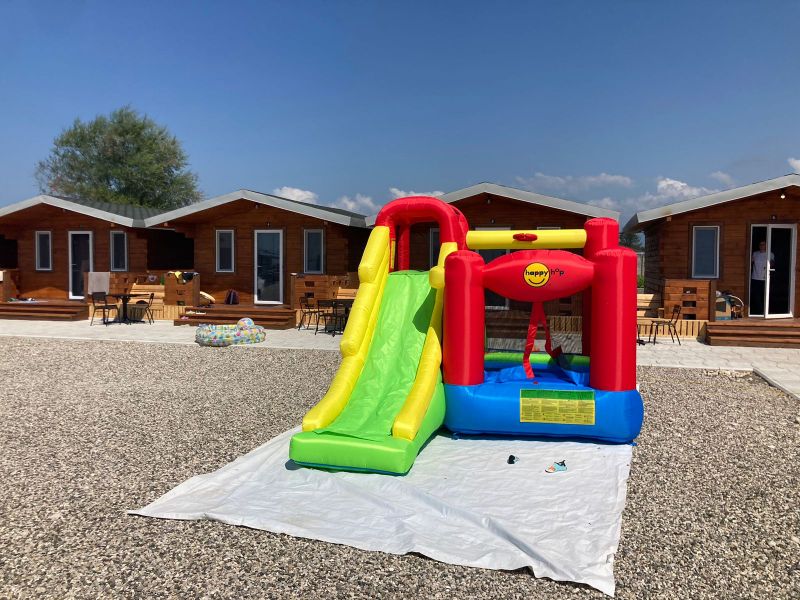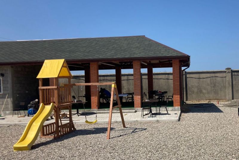 На территории комплекса есть каркасный открытый бассейн и просторная обеденная зона. Для автомобилистов предусмотрена парковка. Маленькие постояльцы могут весело провести время на игровой площадке. Собственный песчано-галечный пляж находится 100 метрах. На береговой линии установлены зонты от солнца, шезлонги и раздевалки.